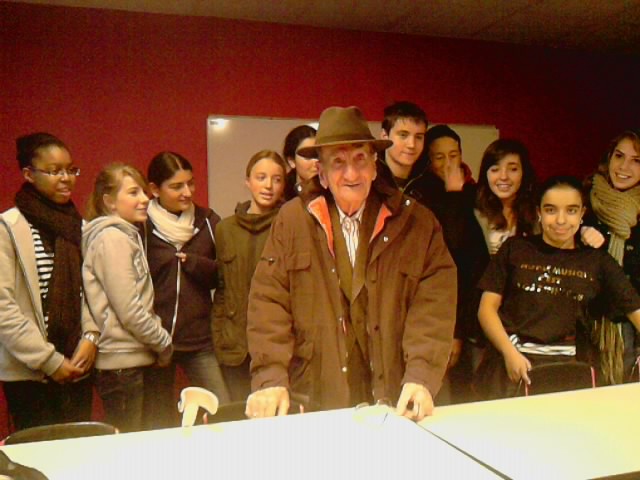 Intervention de Juan Enrique Gonzalez au Collège de l’Alouette à PESSAC pour les classes de 3ème,  en  février 2011. Juan Enrique a apporté son témoignage sur la « Retirada » et le parcours des « Camps ».